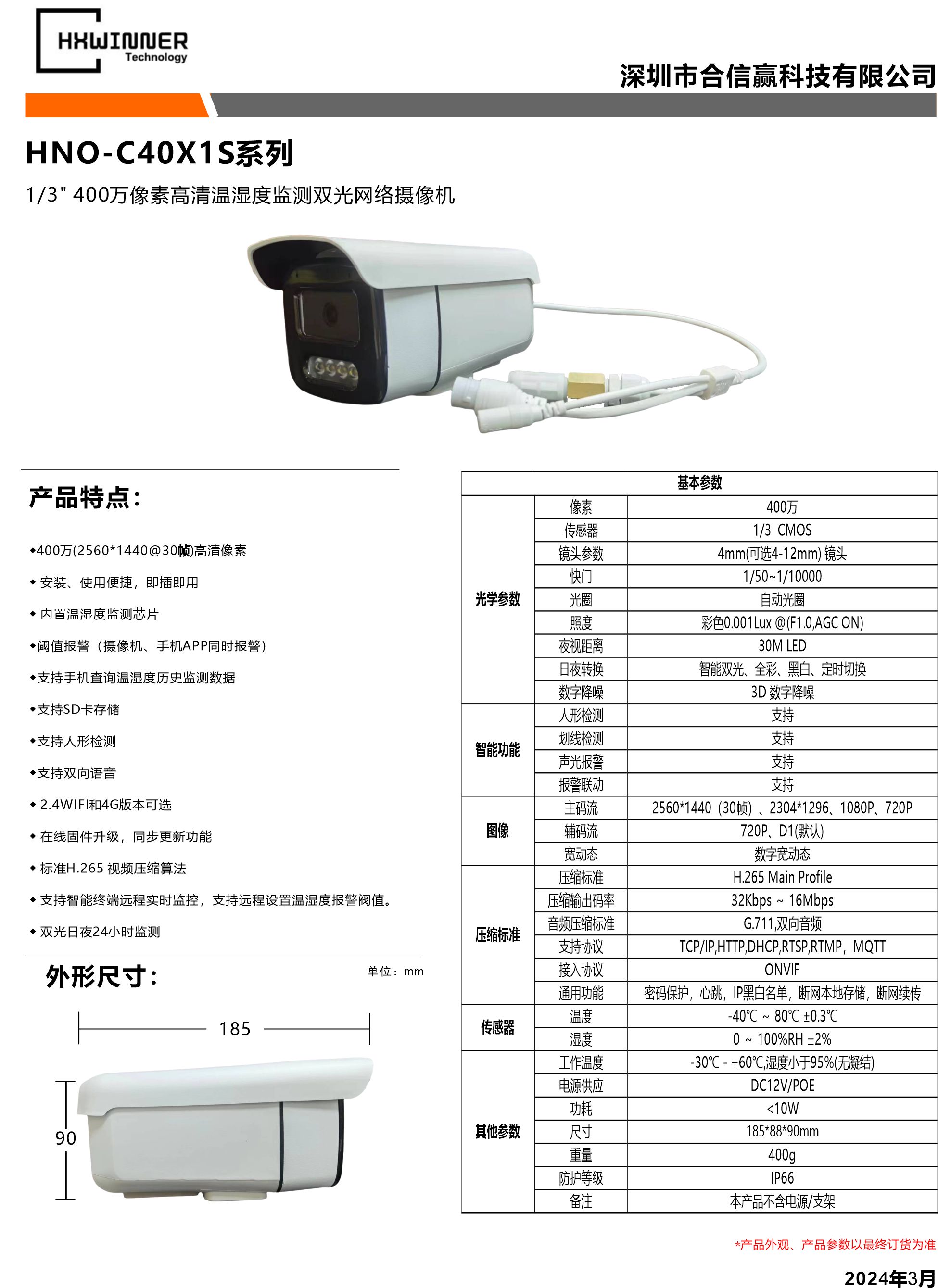 400万温湿度监测红外网络摄像机HNO-C4041系列